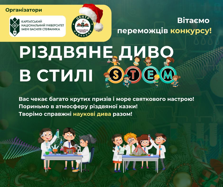 У  Карпатському національному університеті імені Василя Стефаника відбулося нагородження переможців та учасників всеукраїнського конкурсу «Різдвяне диво в стилі STEM», який об’єднав науку, творчість і різдвяну атмосферу. Організатором конкурсу виступив Центр інноваційних методик навчання Карпатського національного університету імені Василя Стефаника під Читати далі