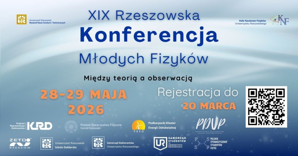 Наші колеги та партнери з Жешувського університету анонсували проведення конференції молодих фізиків у 2026 році! Організатор: Наукове коло фізиків KNF Жешувського університету 35-959 Жешув, Польща 19-та Жешувська конференція молодих фізиків 28–29 травня 2026 р. Між теорією та спостереженням Запрошуємо студентів, Читати далі